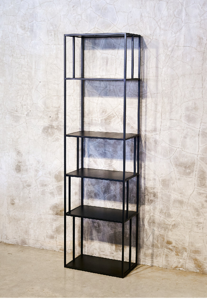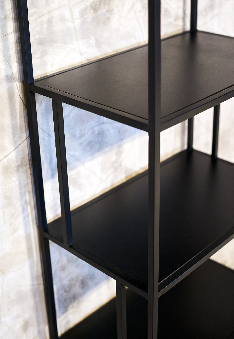 Librero con estructura fabricada de herrería negra